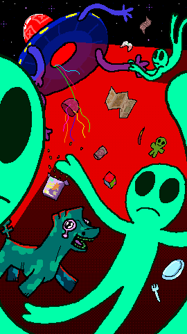 It’s the aliens. Bad news. Our ships orifice hatch had opened abruptly while we were in free flight. Hard to say what caused it but everything, including us, was flung out into space.